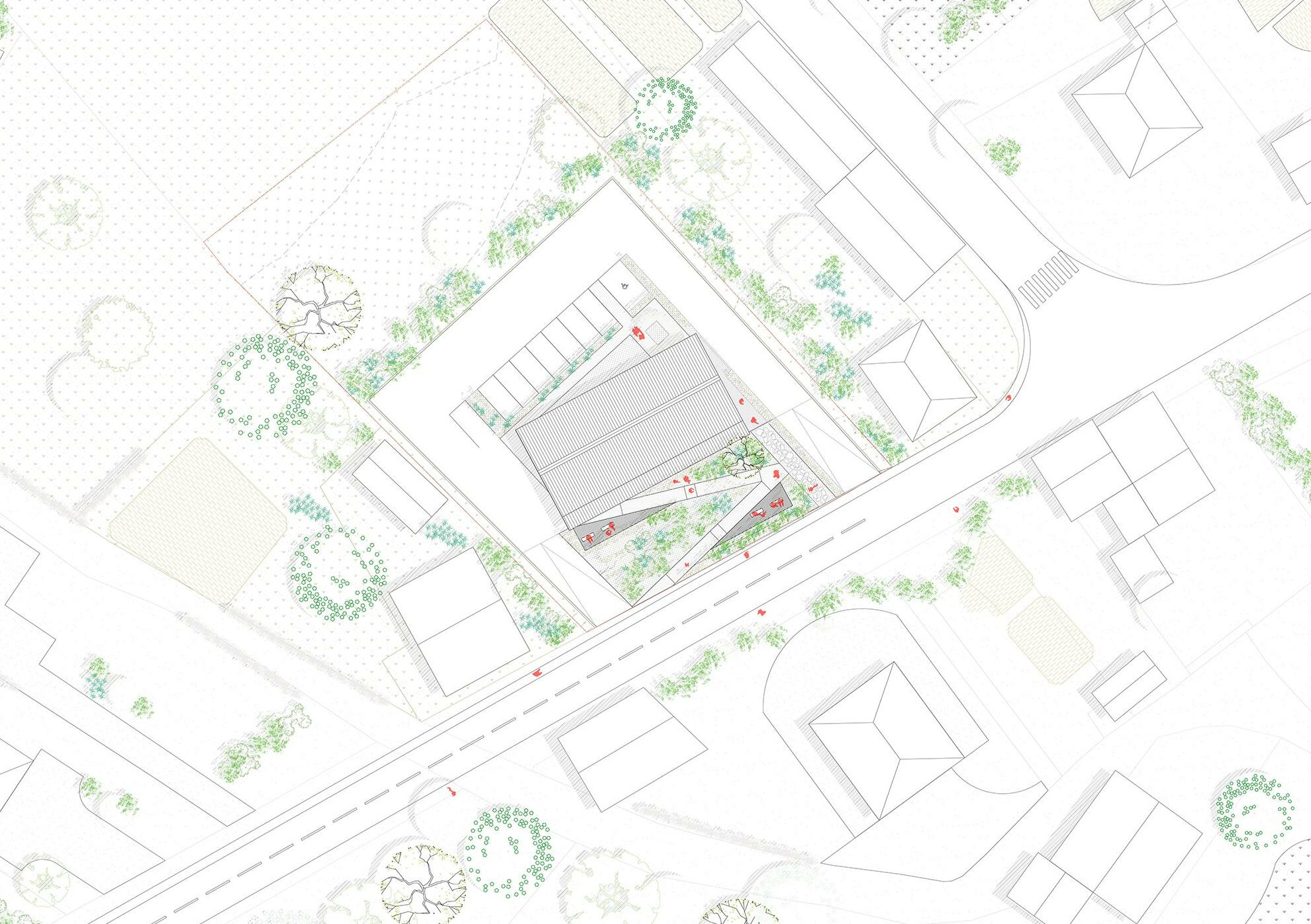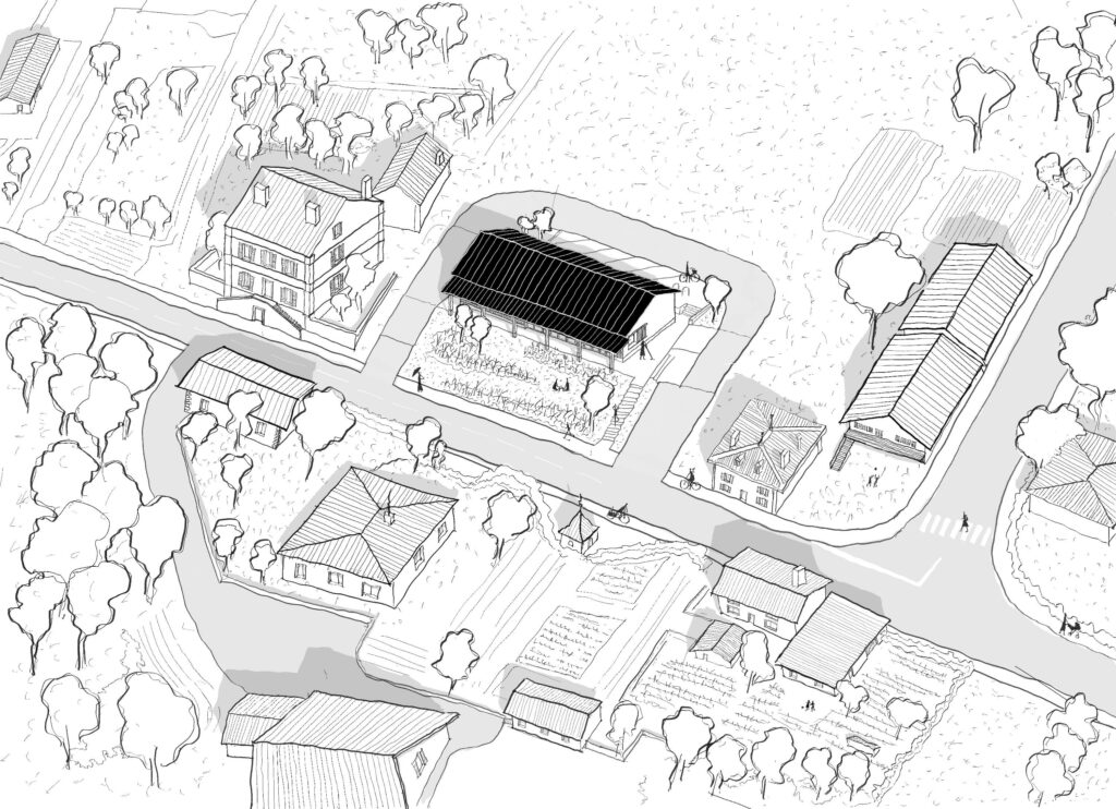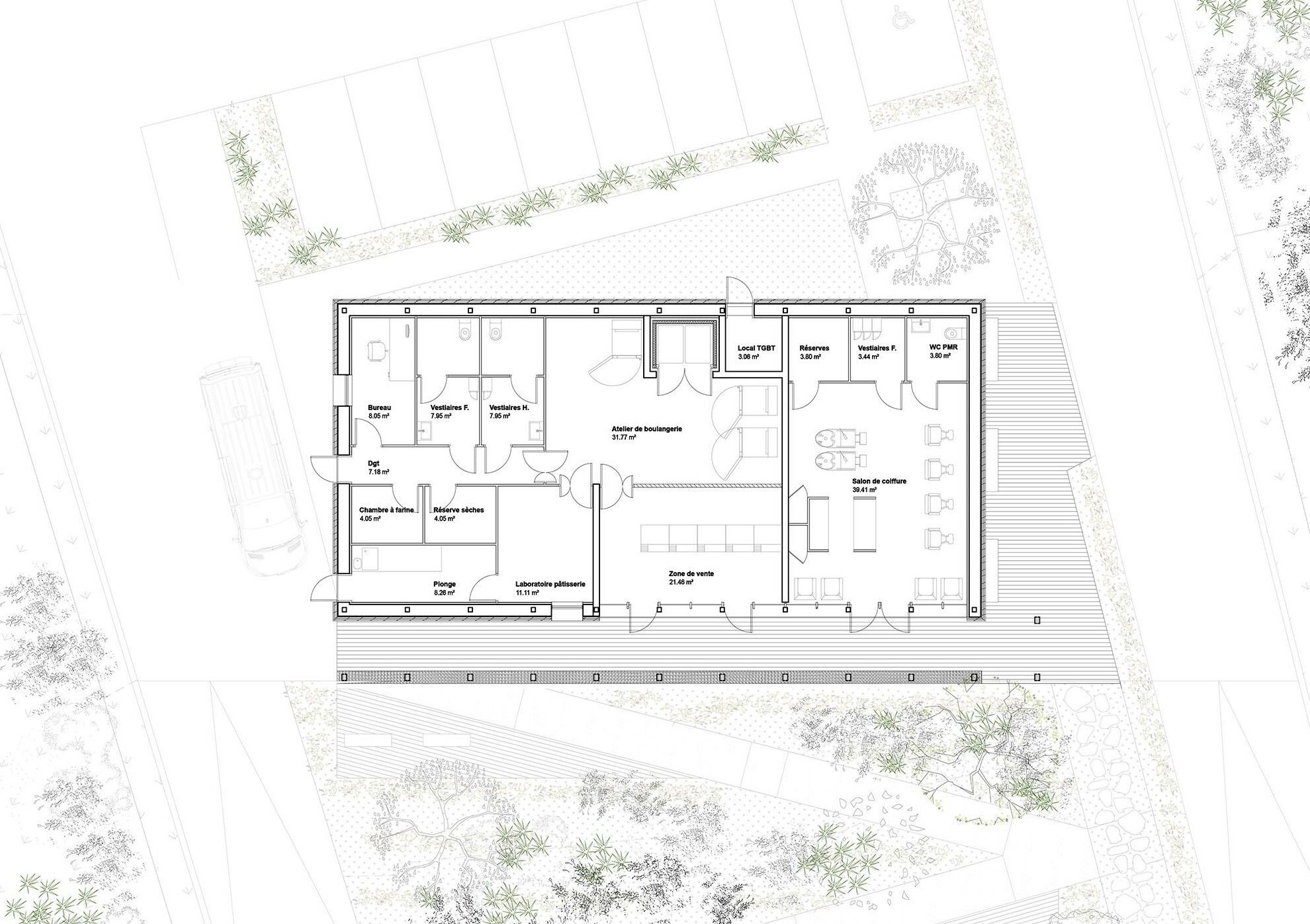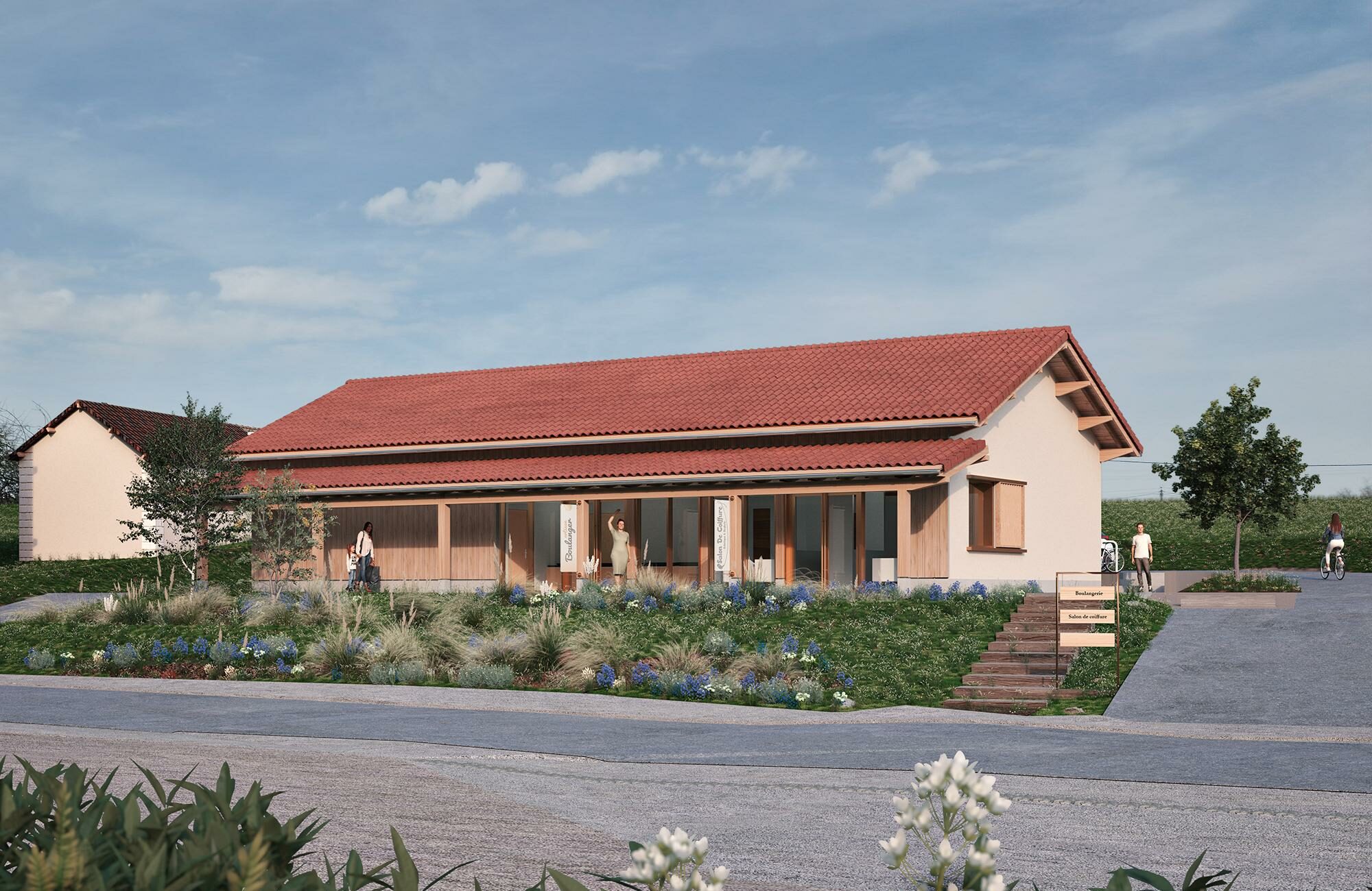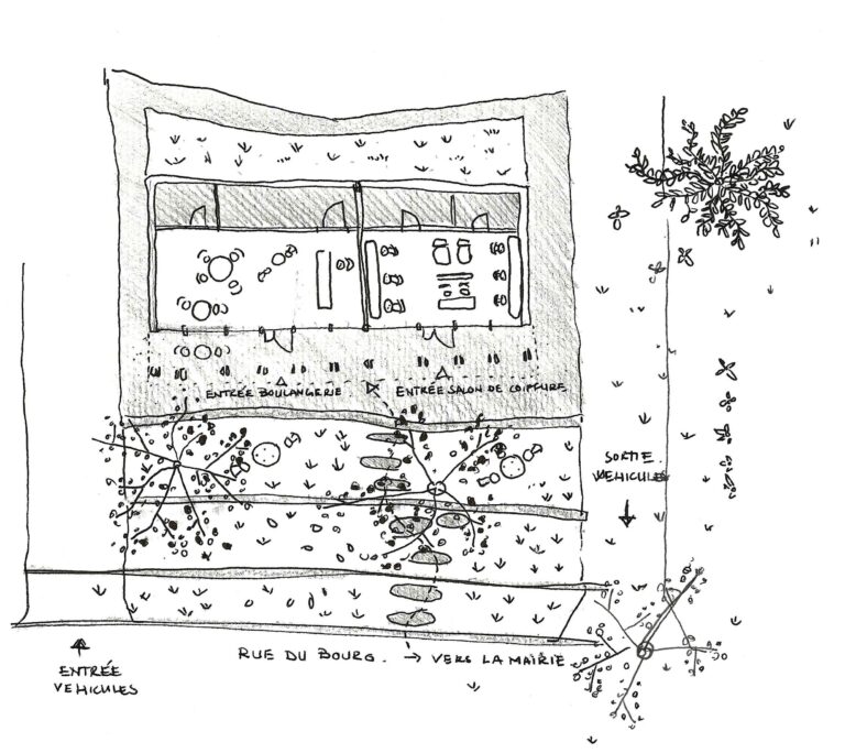 Par son implantation, l’articulation et les matériaux employés, le bâtiment regroupant les deux commerces et les aménagements paysagers s’inscrit dans le prolongement urbain du centre de Villars.